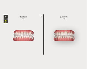 アウトカムシミュレーションは、簡易的な矯正治療シミュレーションのことで、光学カメラで撮影した後、インビザラインGoのクリンチェックを使用して、歯並びの立体的な変化をシミュレートし、分析や治療計画を提供できます。治療中でも進捗状況を確認し、シミュレーション通りに治療が進んでいるかどうかを判断することができます。